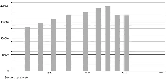 - Population municipale légale en vigueur au 1er janvier 2024, millésimée 2021, définie dans les limites territoriales en vigueur au 1er janvier 2023, date de référence statistique : 1er janvier 2021.