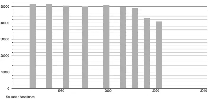 - Population municipale légale en vigueur au 1er janvier 2024, millésimée 2021, définie dans les limites territoriales en vigueur au 1er janvier 2023, date de référence statistique : 1er janvier 2021.