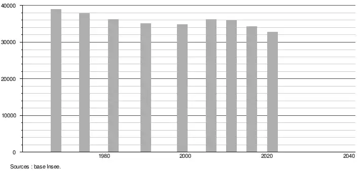 - Population municipale légale en vigueur au 1er janvier 2024, millésimée 2021, définie dans les limites territoriales en vigueur au 1er janvier 2023, date de référence statistique : 1er janvier 2021.