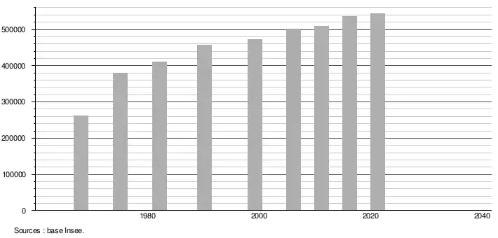 - Population municipale légale en vigueur au 1er janvier 2024, millésimée 2021, définie dans les limites territoriales en vigueur au 1er janvier 2023, date de référence statistique : 1er janvier 2021.