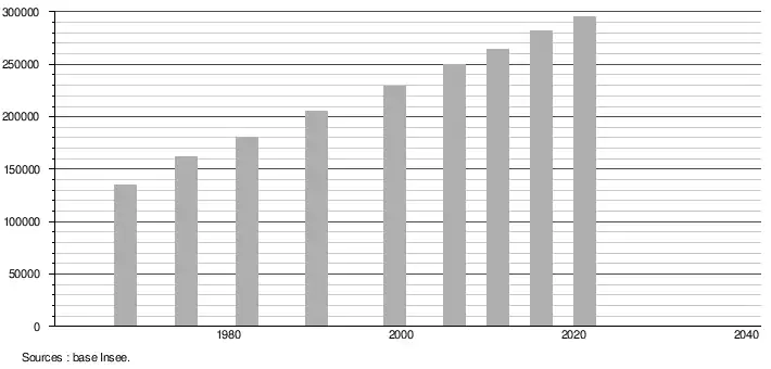 - Population municipale légale en vigueur au 1er janvier 2024, millésimée 2021, définie dans les limites territoriales en vigueur au 1er janvier 2023, date de référence statistique : 1er janvier 2021.