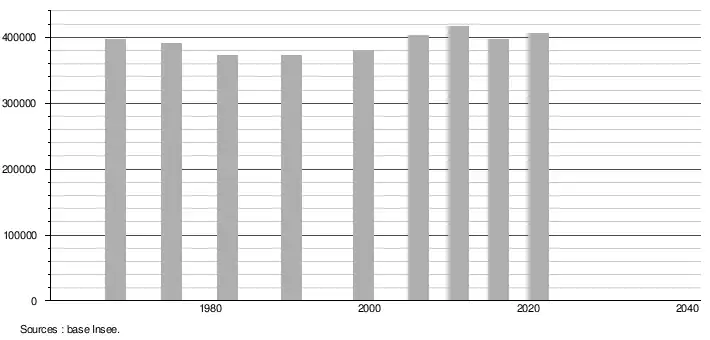 - Population municipale légale en vigueur au 1er janvier 2024, millésimée 2021, définie dans les limites territoriales en vigueur au 1er janvier 2023, date de référence statistique : 1er janvier 2021.