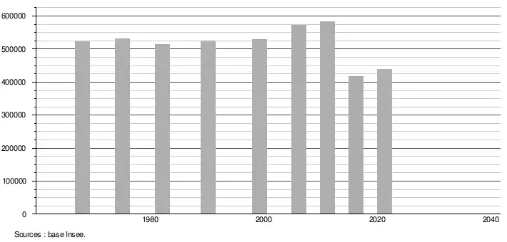 - Population municipale légale en vigueur au 1er janvier 2024, millésimée 2021, définie dans les limites territoriales en vigueur au 1er janvier 2023, date de référence statistique : 1er janvier 2021.
