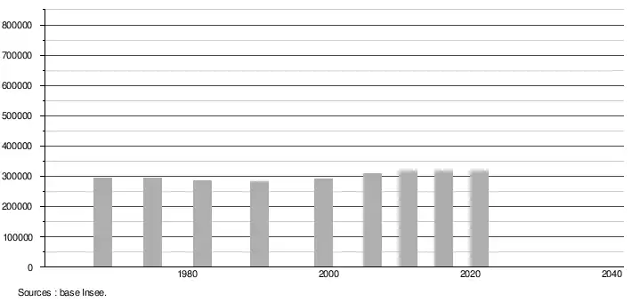- Population municipale légale en vigueur au 1er janvier 2024, millésimée 2021, définie dans les limites territoriales en vigueur au 1er janvier 2023, date de référence statistique : 1er janvier 2021.