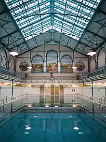 Bains publics (Städtische Volksbadeanstalt) dans l'arrondissement de Charlottenbourg-Wilmersdorf. Photo novembre 2017.