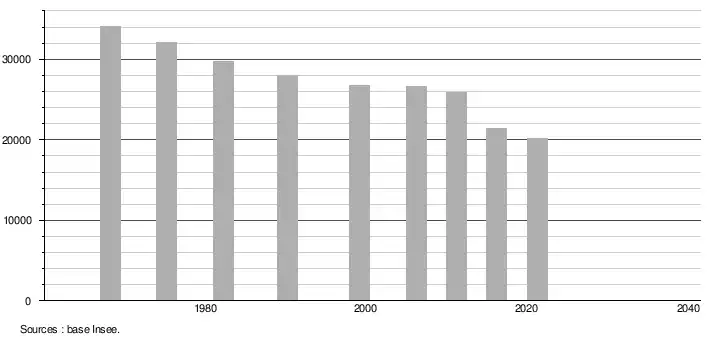 - Population municipale légale en vigueur au 1er janvier 2024, millésimée 2021, définie dans les limites territoriales en vigueur au 1er janvier 2023, date de référence statistique : 1er janvier 2021.