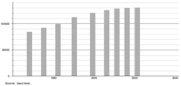 - Population municipale légale en vigueur au 1er janvier 2024, millésimée 2021, définie dans les limites territoriales en vigueur au 1er janvier 2023, date de référence statistique : 1er janvier 2021.