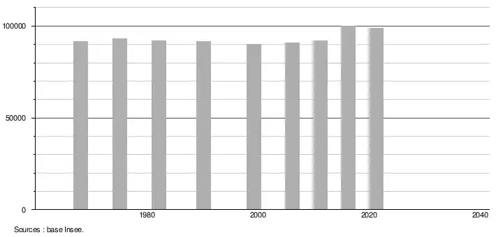 - Population municipale légale en vigueur au 1er janvier 2024, millésimée 2021, définie dans les limites territoriales en vigueur au 1er janvier 2023, date de référence statistique : 1er janvier 2021.