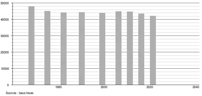 - Population municipale légale en vigueur au 1er janvier 2024, millésimée 2021, définie dans les limites territoriales en vigueur au 1er janvier 2023, date de référence statistique : 1er janvier 2021.