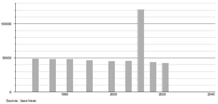 - Population municipale légale en vigueur au 1er janvier 2024, millésimée 2021, définie dans les limites territoriales en vigueur au 1er janvier 2023, date de référence statistique : 1er janvier 2021.