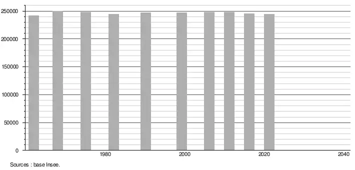 - Population municipale légale en vigueur au 1er janvier 2024, millésimée 2021, définie dans les limites territoriales en vigueur au 1er janvier 2023, date de référence statistique : 1er janvier 2021.