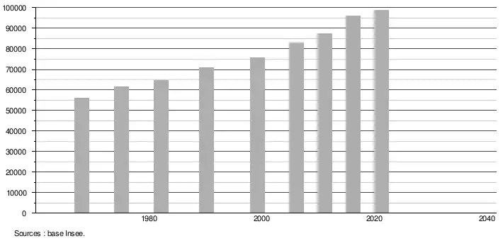 - Population municipale légale en vigueur au 1er janvier 2024, millésimée 2021, définie dans les limites territoriales en vigueur au 1er janvier 2023, date de référence statistique : 1er janvier 2021.