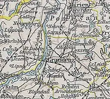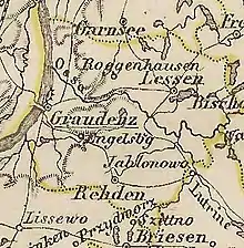 En 1910, l'arrondissement de Graudenz comprend les deux villes de Lessen et Rehden ainsi que 80 communes[6],[7]