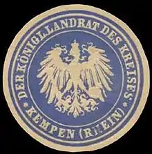 En 1929, l'arrondissement de Kempen, qui comprend jusqu'alors quatre villes et 16 bureaux avec 18 communes, est dissous. Il est absorbé avec des parties d'autres districts, notamment les communes de l'arrondissement de Krefeld qui n'ont pas été rattachées à l'arrondissement urbain de Krefeld-Uerdingen, dans le nouvel arrondissement de Kempen-Krefeld (de).