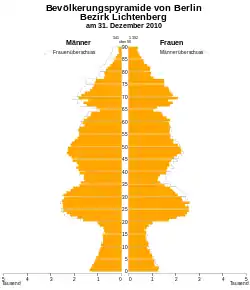 La population de l'arrondissement était estimée au à 283 121 habitants dont 142 620 femmes et 140 501 hommes selon le registre des déclarations domiciliaires[1]. L'âge moyen est de 42,7 ans en 2017, ce qui est également la moyenne berlinoise. Il était de 40,9 en 2001.