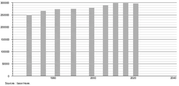 - Population municipale légale en vigueur au 1er janvier 2024, millésimée 2021, définie dans les limites territoriales en vigueur au 1er janvier 2023, date de référence statistique : 1er janvier 2021.