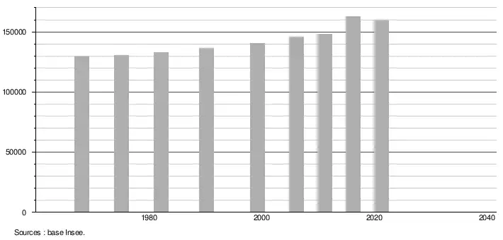 - Population municipale légale en vigueur au 1er janvier 2024, millésimée 2021, définie dans les limites territoriales en vigueur au 1er janvier 2023, date de référence statistique : 1er janvier 2021.