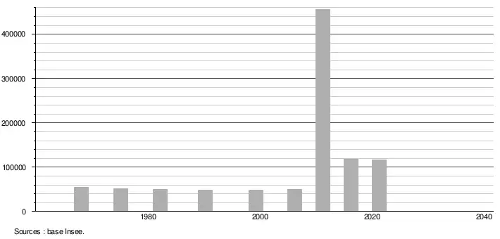 - Population municipale légale en vigueur au 1er janvier 2024, millésimée 2021, définie dans les limites territoriales en vigueur au 1er janvier 2023, date de référence statistique : 1er janvier 2021.