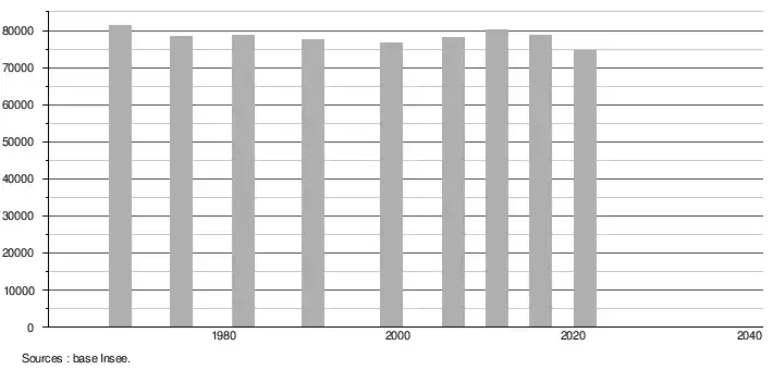 - Population municipale légale en vigueur au 1er janvier 2024, millésimée 2021, définie dans les limites territoriales en vigueur au 1er janvier 2023, date de référence statistique : 1er janvier 2021.