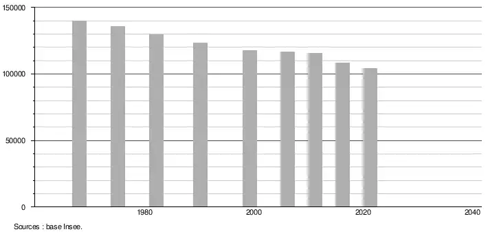 - Population municipale légale en vigueur au 1er janvier 2024, millésimée 2021, définie dans les limites territoriales en vigueur au 1er janvier 2023, date de référence statistique : 1er janvier 2021.