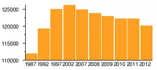 | Population | 126 167 | 125 870 | 124 895 | 123 881 | 122 989 | 122 206 | 122 225 | 120 225 | 119 848 |
