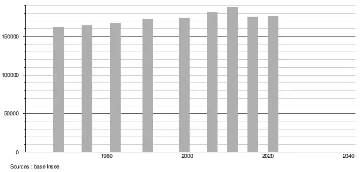 - Population municipale légale en vigueur au 1er janvier 2024, millésimée 2021, définie dans les limites territoriales en vigueur au 1er janvier 2023, date de référence statistique : 1er janvier 2021.