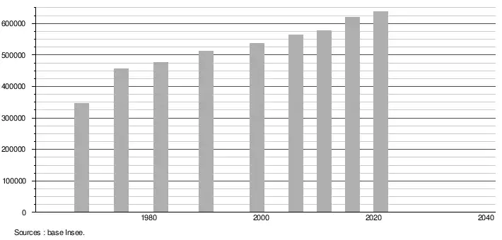 - Population municipale légale en vigueur au 1er janvier 2024, millésimée 2021, définie dans les limites territoriales en vigueur au 1er janvier 2023, date de référence statistique : 1er janvier 2021.