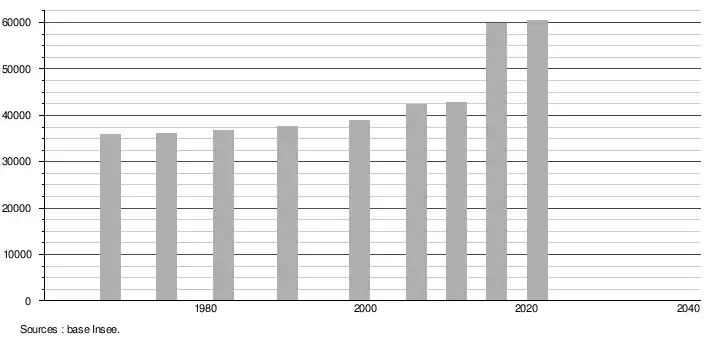 - Population municipale légale en vigueur au 1er janvier 2024, millésimée 2021, définie dans les limites territoriales en vigueur au 1er janvier 2023, date de référence statistique : 1er janvier 2021.