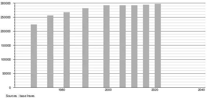 - Population municipale légale en vigueur au 1er janvier 2024, millésimée 2021, définie dans les limites territoriales en vigueur au 1er janvier 2023, date de référence statistique : 1er janvier 2021.