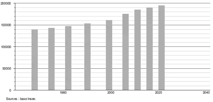 - Population municipale légale en vigueur au 1er janvier 2024, millésimée 2021, définie dans les limites territoriales en vigueur au 1er janvier 2023, date de référence statistique : 1er janvier 2021.