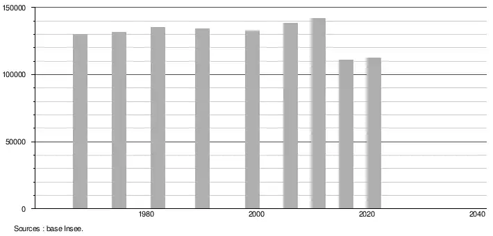 - Population municipale légale en vigueur au 1er janvier 2024, millésimée 2021, définie dans les limites territoriales en vigueur au 1er janvier 2023, date de référence statistique : 1er janvier 2021.