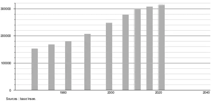 - Population municipale légale en vigueur au 1er janvier 2024, millésimée 2021, définie dans les limites territoriales en vigueur au 1er janvier 2023, date de référence statistique : 1er janvier 2021.