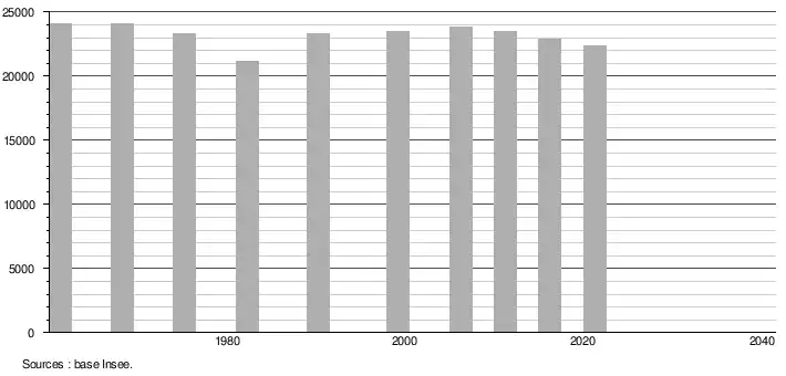 - Population municipale légale en vigueur au 1er janvier 2024, millésimée 2021, définie dans les limites territoriales en vigueur au 1er janvier 2023, date de référence statistique : 1er janvier 2021.