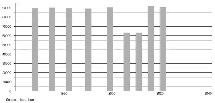 - Population municipale légale en vigueur au 1er janvier 2024, millésimée 2021, définie dans les limites territoriales en vigueur au 1er janvier 2023, date de référence statistique : 1er janvier 2021.