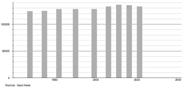 - Population municipale légale en vigueur au 1er janvier 2024, millésimée 2021, définie dans les limites territoriales en vigueur au 1er janvier 2023, date de référence statistique : 1er janvier 2021.