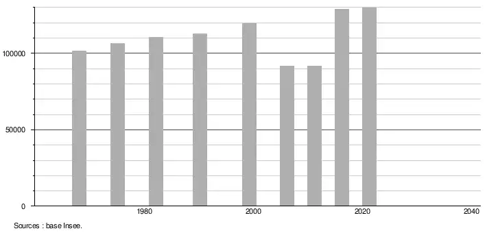 - Population municipale légale en vigueur au 1er janvier 2024, millésimée 2021, définie dans les limites territoriales en vigueur au 1er janvier 2023, date de référence statistique : 1er janvier 2021.