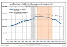 Ligne bleue: Population -- Ligne pointillé: Comparaison avec le développement de Brandebourg