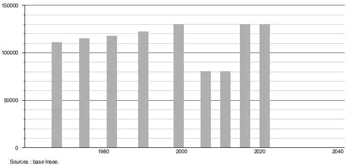 - Population municipale légale en vigueur au 1er janvier 2024, millésimée 2021, définie dans les limites territoriales en vigueur au 1er janvier 2023, date de référence statistique : 1er janvier 2021.