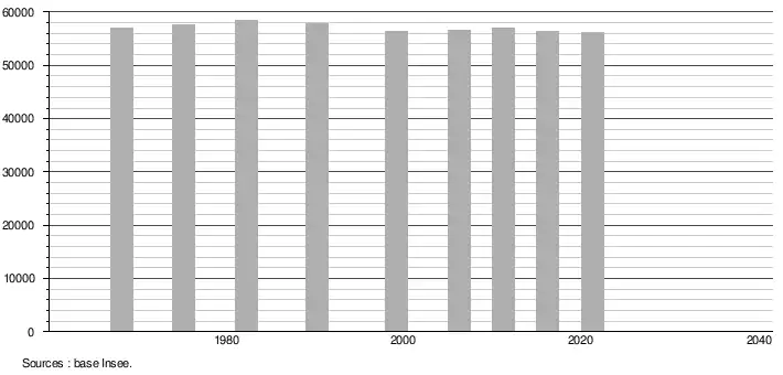 - Population municipale légale en vigueur au 1er janvier 2024, millésimée 2021, définie dans les limites territoriales en vigueur au 1er janvier 2023, date de référence statistique : 1er janvier 2021.