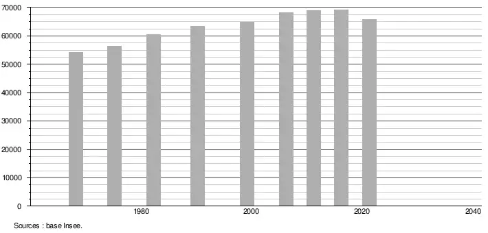 - Population municipale légale en vigueur au 1er janvier 2024, millésimée 2021, définie dans les limites territoriales en vigueur au 1er janvier 2023, date de référence statistique : 1er janvier 2021.