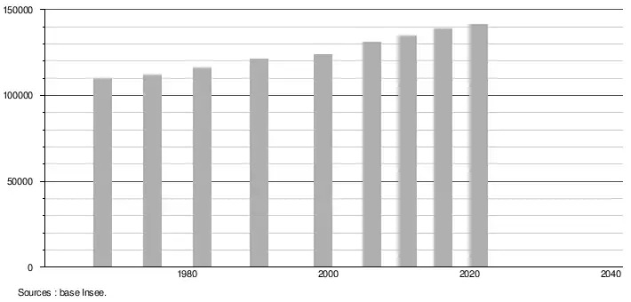 - Population municipale légale en vigueur au 1er janvier 2024, millésimée 2021, définie dans les limites territoriales en vigueur au 1er janvier 2023, date de référence statistique : 1er janvier 2021.