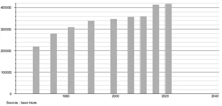 - Population municipale légale en vigueur au 1er janvier 2024, millésimée 2021, définie dans les limites territoriales en vigueur au 1er janvier 2023, date de référence statistique : 1er janvier 2021.