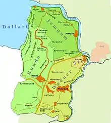 L'arrondissement englobait l'ensemble du Rheiderland (de). Parallèlement, à l'ouest de l'Ems, passe la route frisonne (de), une ancienne route de commerce à longue distance entre Emden et Münster.