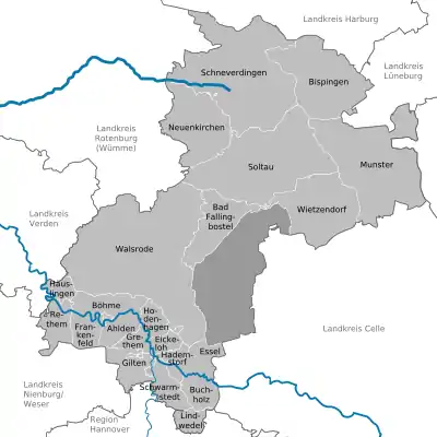 Aller, Örtze, Soltau, Leine, Grindau, Böhme, Bomlitz, Warnau, Fulde, Wümme, Wiedau, Luhe, Wietze (Örtze).