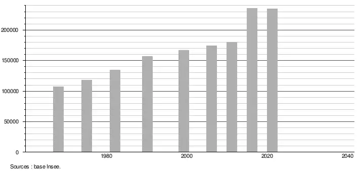 - Population municipale légale en vigueur au 1er janvier 2024, millésimée 2021, définie dans les limites territoriales en vigueur au 1er janvier 2023, date de référence statistique : 1er janvier 2021.