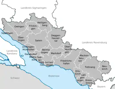 | Frickingen | Commune | 4 | Jürgen Stukle | 88699 | +49-07554 | FN | 26,46 km² | 2 915 | 31/12/2015 | 110,17 |
