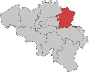 Localisation de l'arrondissement judiciaire du Limbourg, après la fusion des arrondissements judiciaires de 2014.