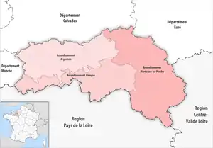 | Arrondissement d'Alençon | 611 | 1 548,50 | 84 879 (2021) | 55 | |