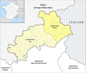 | Arrondissement de Briançon | 051 | 2 138,10 | 33 304 (2021) | 16 | |