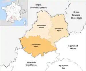 | Arrondissement de Cahors | 461 | 1 860,90 | 73 707 (2021) | 40 | |